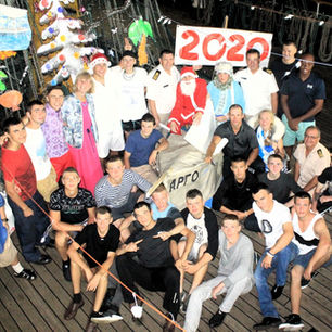 В этот раз Новый год для россиян наступил по-особому. Далеко от родных берегов в экспедиции «Паруса мира», посвящённой 200-летию открытия Антарктиды русскими мореплавателями и 75-летию Победы в Великой Отечественной войне, совершают кругосветные плавания три больших учебных парусника Росрыболовства — «Седов», «Крузенштерн» и «Паллада». А поскольку любое российское судно, несущее государственный флаг, является территорией России, то реальные и временные границы новогодних поздравлений значительно расширились.